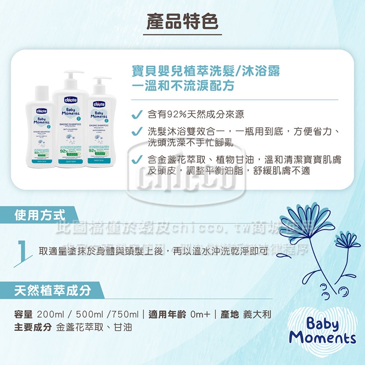 chicco-寶貝嬰兒植萃洗髮/沐浴露-溫和不流淚配方(500ml/750ml) [官方直營]500ml|750mlHair Care & Body Washchicco官方直營-義大利嬰幼館