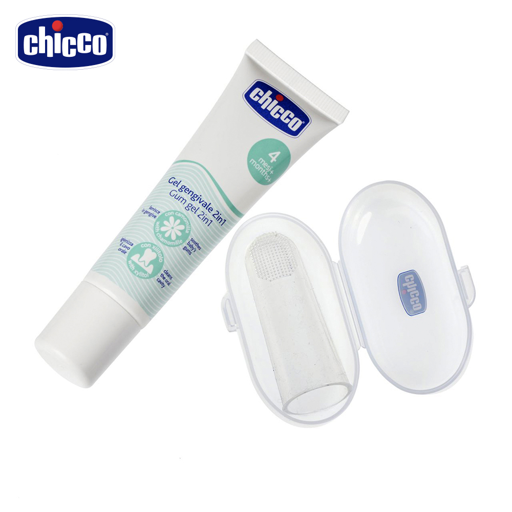chicco-寶貝長牙舒緩清潔組-多功能凝膠及指套牙刷1入Baby Oral Carechicco官方直營-義大利嬰幼館