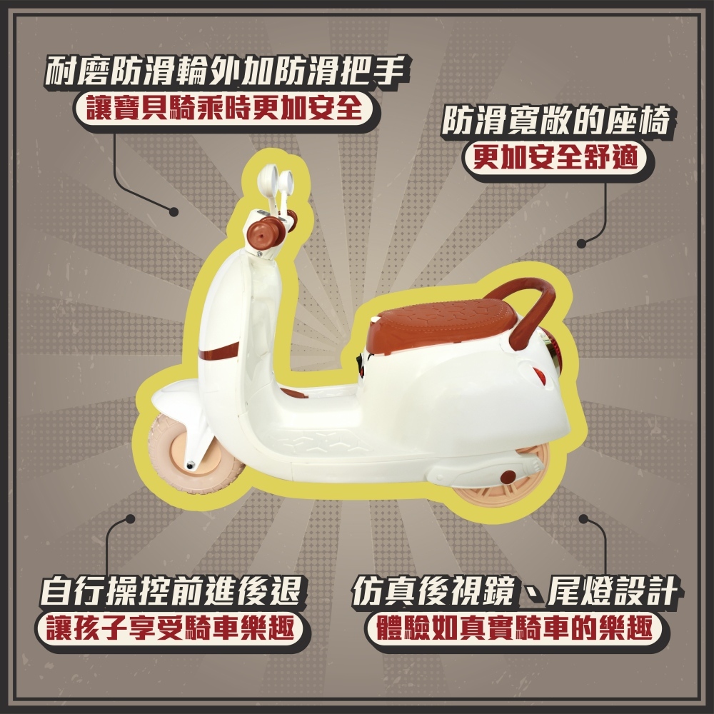 親親CCTOY 福利品~復刻達可 兒童電動摩托車 RT-618 白黃二色黃色(微刮傷)介意勿下單|白色(微刮傷)介意勿下單|黃色(箱損不在檢查內部)隨機出貨Sports & Outdoor PlayCCTOY 親親兒童玩具旗艦館