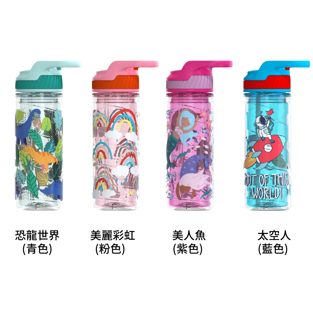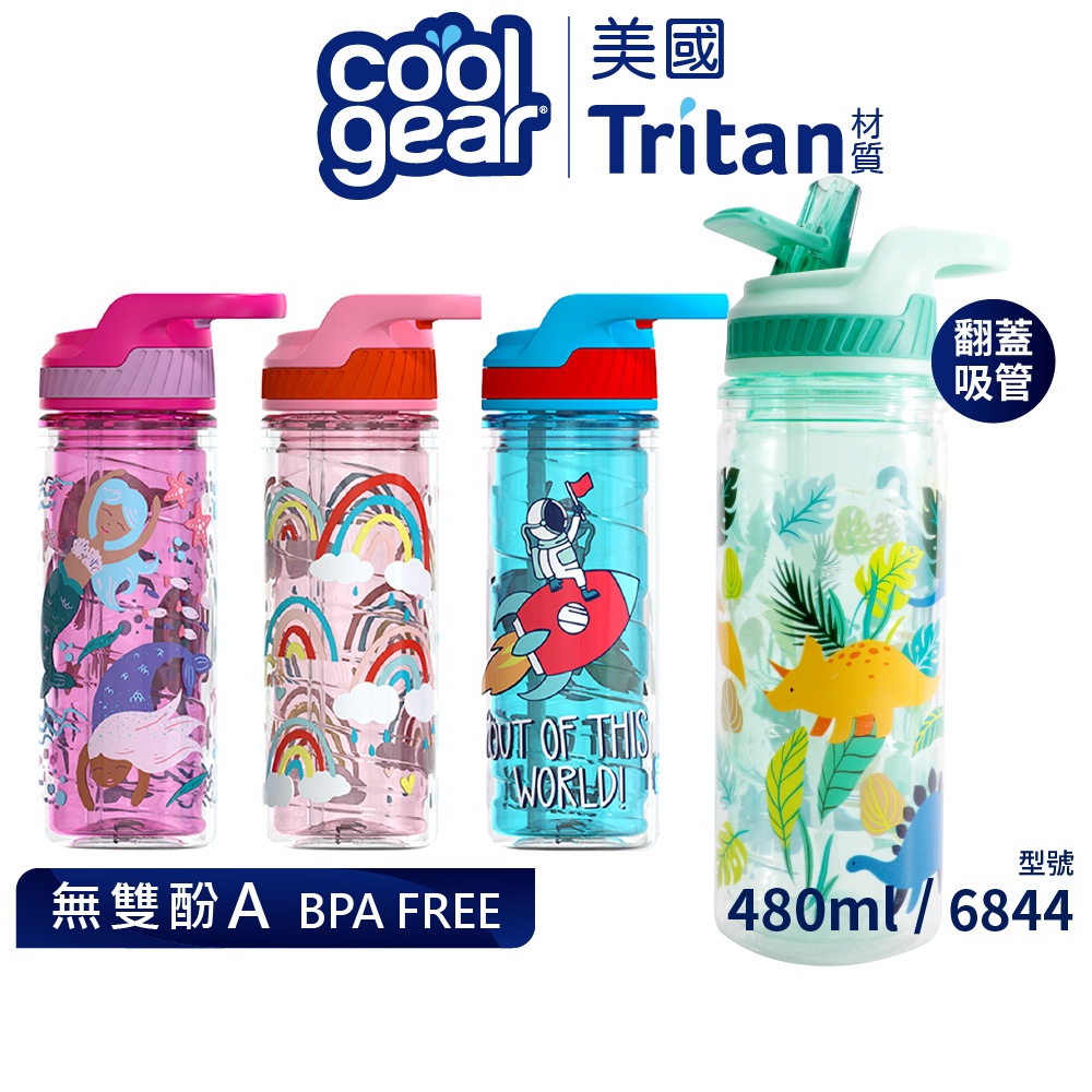 Cool Gear 酷樂兒童雙層翻蓋吸管水壺-480ml|美國Tritan材質無雙酚A防漏防摔水壺 6844恐龍世界|青色|美麗彩虹|粉色|美人魚|紫色|太空人|藍色UtensilsCool Gear酷樂 (世界名牌杯瓶+日本優品)