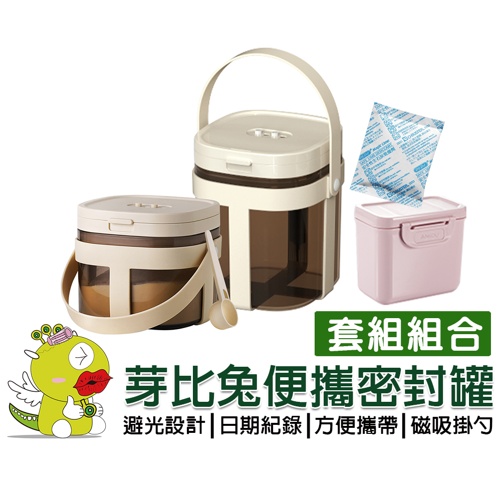 【啾愛你】芽比兔Yep2便攜密封罐兩件組1200ml+800ml加附矽膠提袋各1 奶粉盒 奶粉罐 奶粉分裝 奶粉密封罐A套組 附提袋+奶粉盒+贈乾燥劑*10包|800ML附提袋|1200ML附提袋UtensilsChuLoveU 啾愛你
