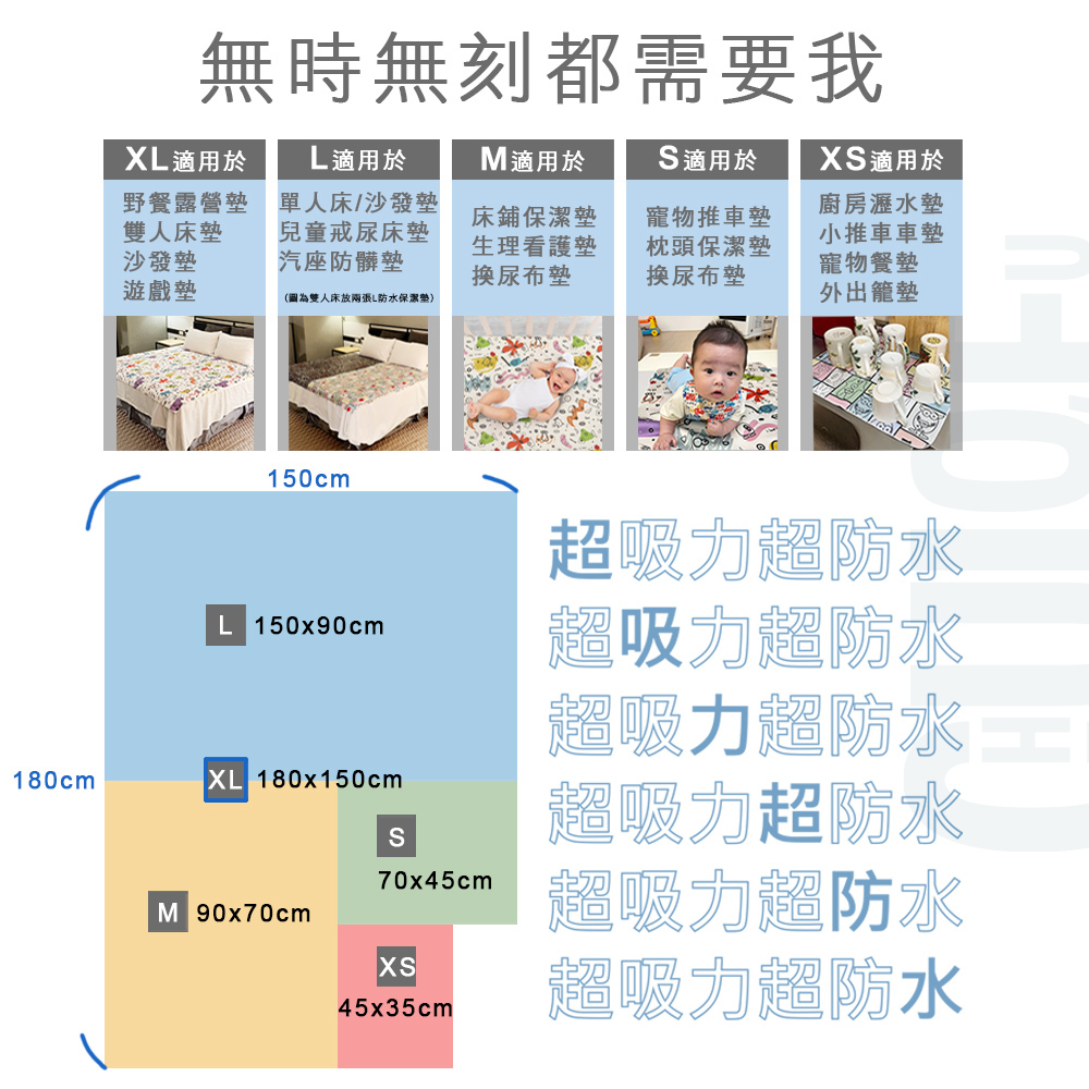 【啾愛你】(台灣現貨製造) 五層超吸力超防水透氣超薄速乾防水保潔墊 隔尿墊 嬰兒防水墊面對混亂-XL號(180*150cm)|面對混亂-L號(150*90cm)|面對混亂-M號(90*70cm)|面對混亂-S號(70*45cm)|面對混亂-XS號(45*35cm)Changing Pads & KitsChuLoveU 啾愛你