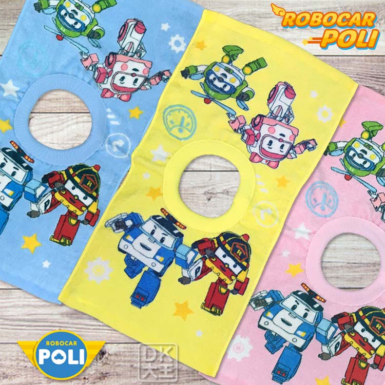 POLI 波力純棉套頭圍兜 正版授權台灣製造 吃飯圍兜兜 口水巾 100%純棉【DK大王】黃色/1條|粉色/1條|藍色/1條|車子款-粉色/1條BibsDK大王旗艦店