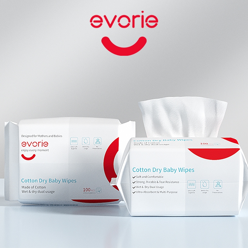 【evorie】嬰兒乾濕兩用巾 親膚、多用途綿柔巾 超大包100抽 敏膚可用2包 200抽|3包 300抽|4包 400抽|1包 100抽WipesEvorie 愛得利品牌旗艦店