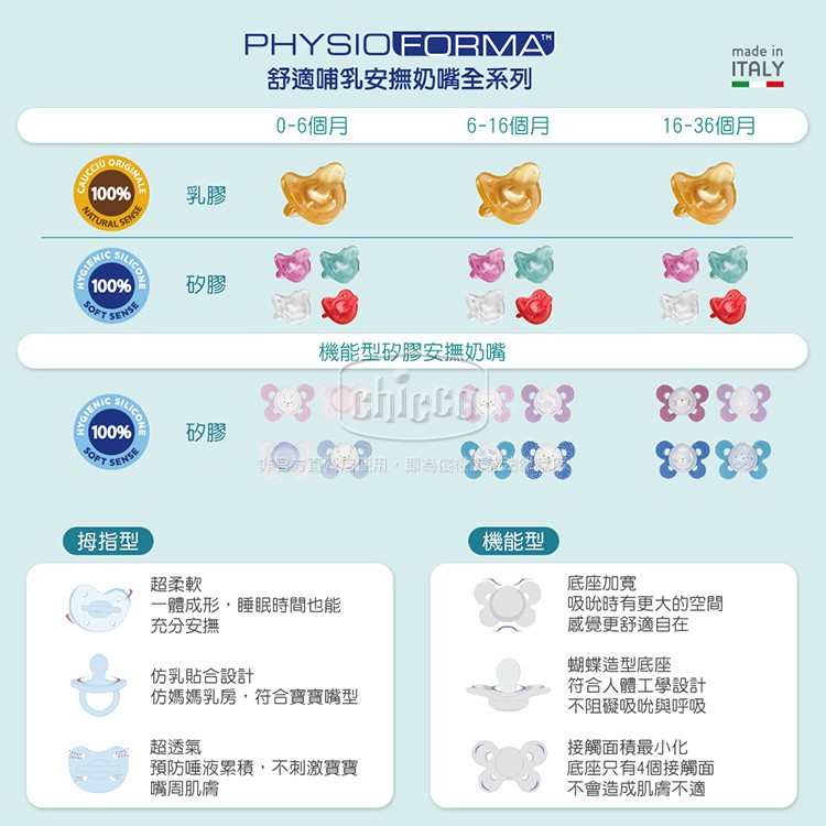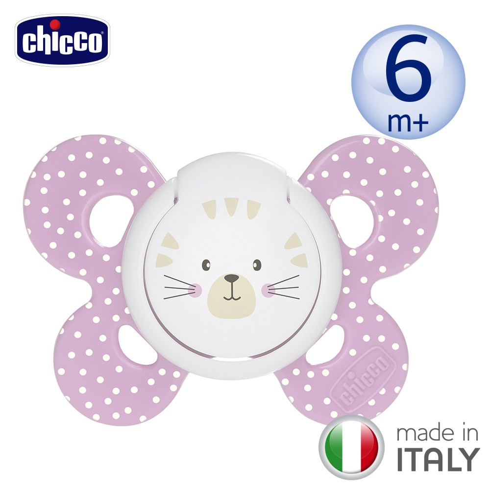 chicco-舒適哺乳-機能型矽膠安撫奶嘴1入-中 (多款)春漾紫|甜粉貓|春漾藍|藍莓熊Pacifierschicco官方直營-義大利嬰幼館