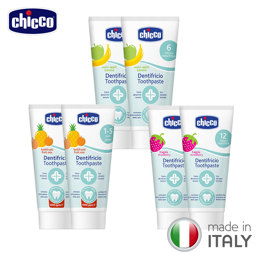 chicco-兒童含氟牙膏量販組-50ml多入組 (蘋果香蕉/水果草莓/鳳梨水果)