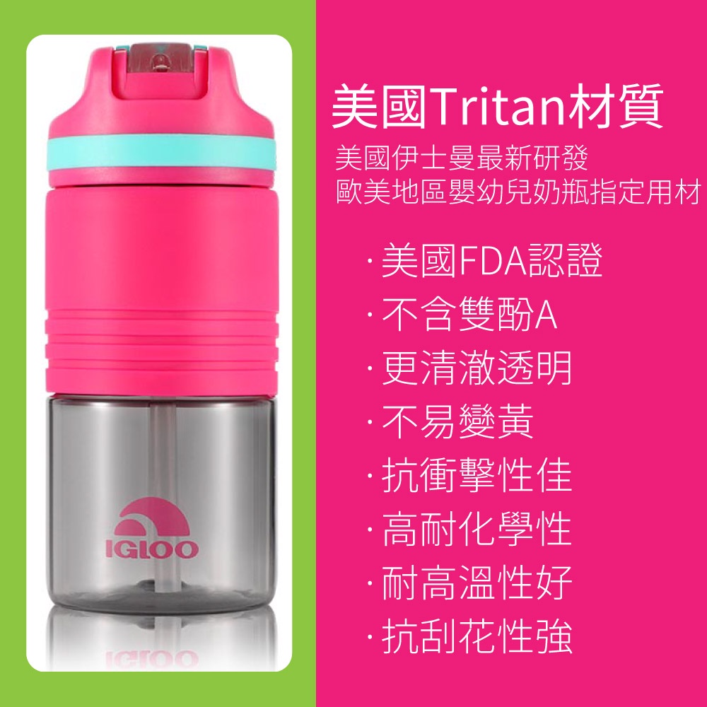 美國IGLOO易酷樂 兒童翻蓋吸管水壺468ML|Tritan材質無雙酚A水瓶防漏水壺_415019玫紅色-70323|果綠色-70321|薄荷綠-70325|深藍色-70319UtensilsCool Gear酷樂 (世界名牌杯瓶+日本優品)
