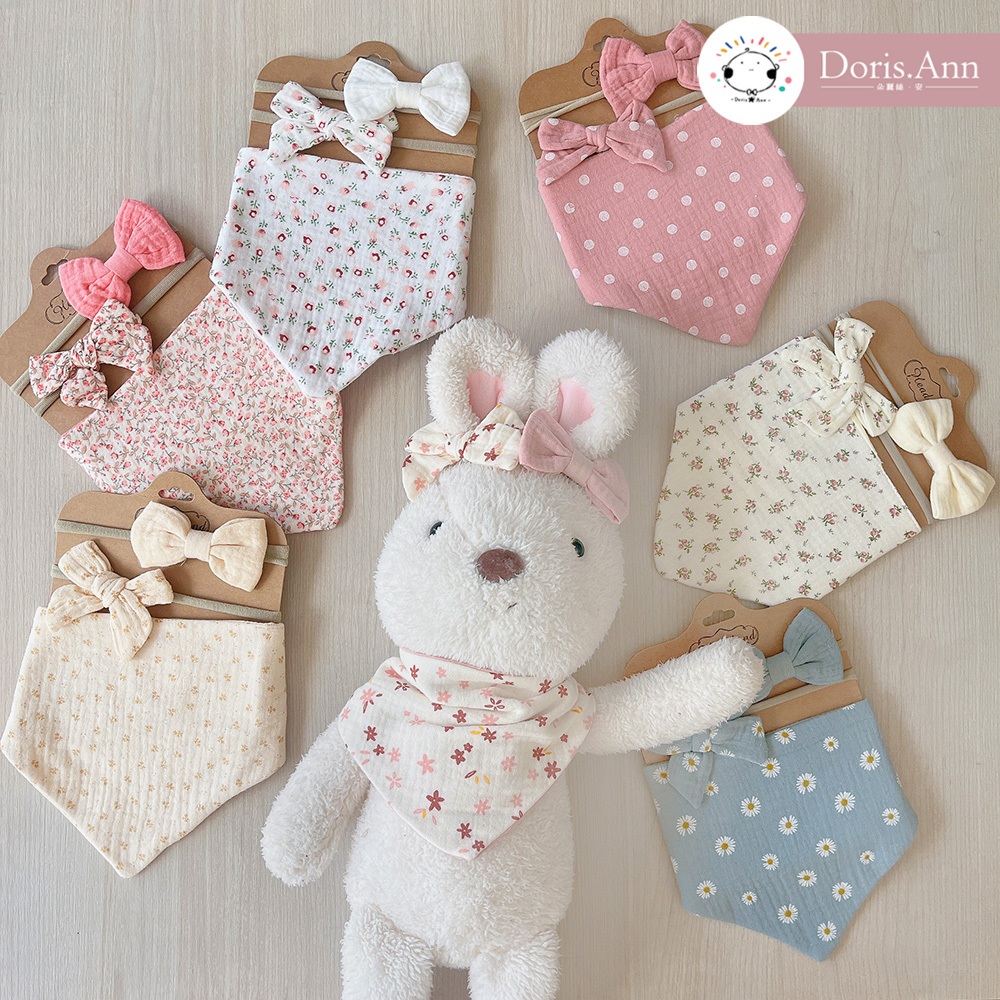 【Doris.Ann】滿版口水巾雙髮帶組 寶寶髮飾 寶寶髮帶 兒童髮飾 新生兒髮帶 口水巾 寶寶圍兜#1|#2|#3|#4|#5|#6|#7|#8|#9|#10BibsDoris.Ann朵麗絲.安