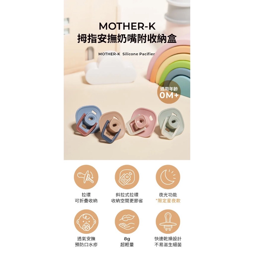 韓國MOTHER-K 拇指安撫奶嘴附收納盒輕焙茶棕|寧靜灰藍|星空玫瑰|星空薄荷PacifiersCHOCHO親子選物
