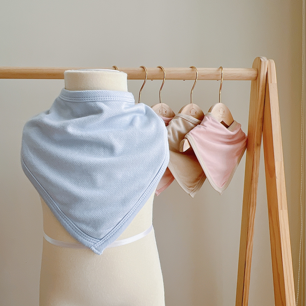 【YOUrs優兒思】咕溜棉-夏日涼感雙面圍兜 涼感圍兜 網眼圍兜 涼感口水巾 三角圍兜天空藍|小麥米|腮紅粉BibsDoris.Ann朵麗絲.安