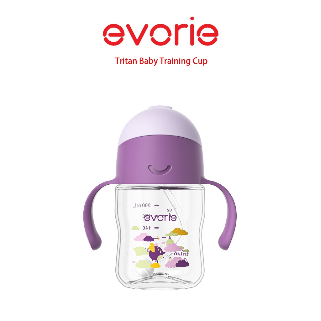 【evorie】Tritan 360度防漏吸管學習水杯200ml(6m+) 夢幻紫 /澳洲獲獎設計/嬰兒學飲杯無額外吸管|+1 額外吸管UtensilsEvorie 愛得利品牌旗艦店