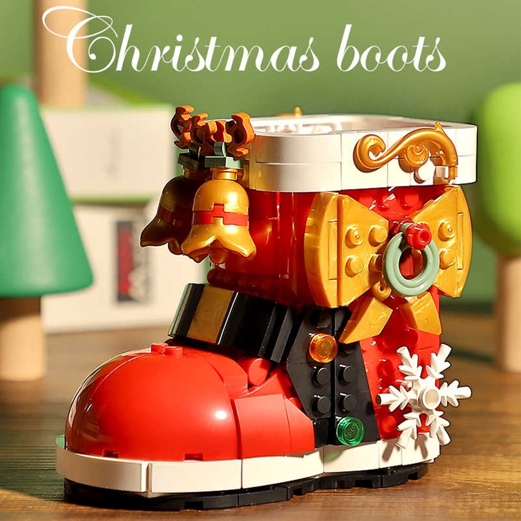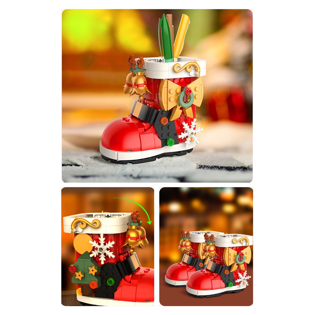 【CHL】聖誕節造型積木 聖誕積木襪筆筒 聖誕襪筆筒 聖誕鞋筆筒 聖誕雪地靴 聖誕筆筒 聖誕節積木 益智積木玩具聖誕雪地靴Block ToysCHL-日本文具進口商 零售 批發