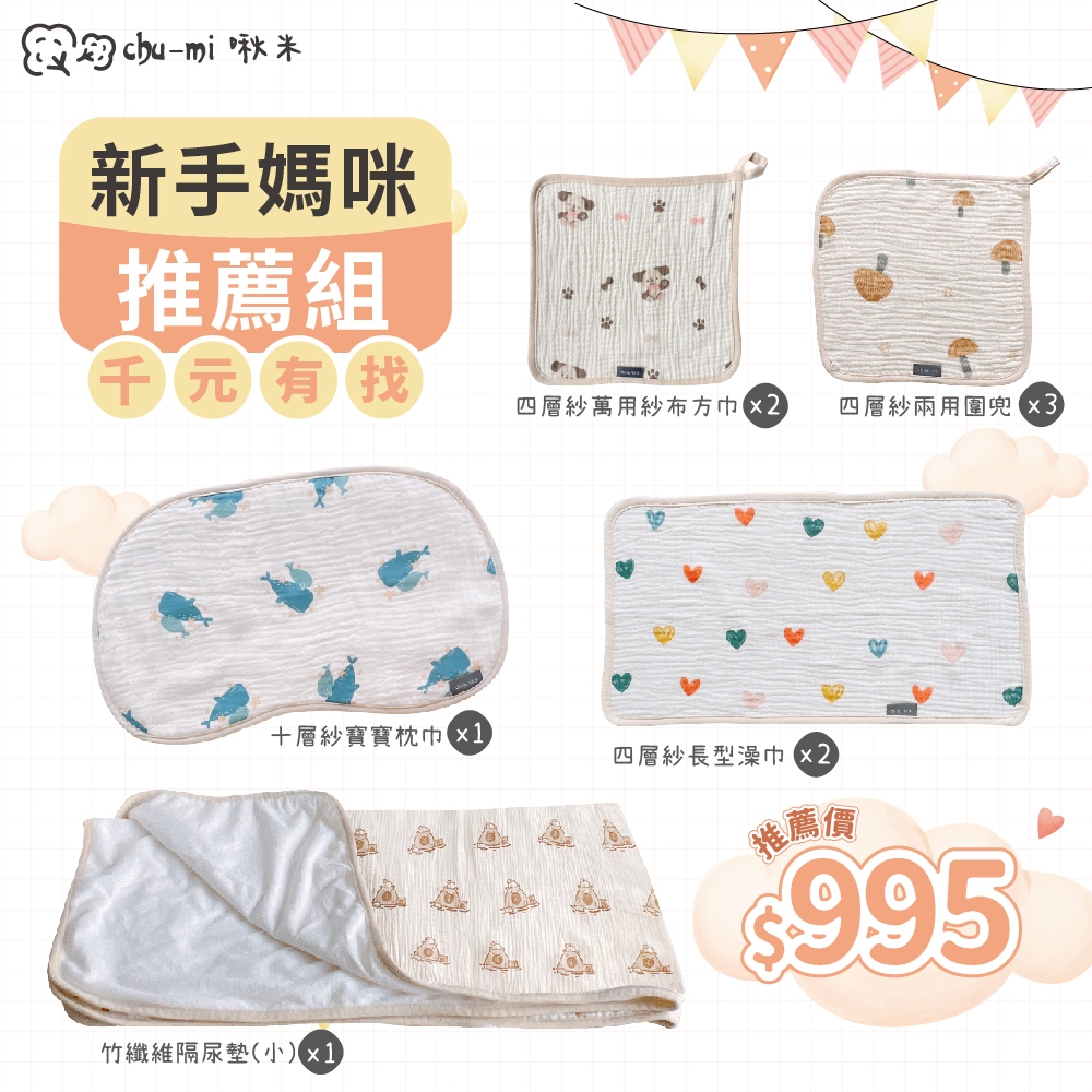 【Chu-mi 啾米】千元有找新生兒選購指南 隔尿墊 枕巾 澡巾 口水巾 新生必備泰迪狗|點點兔|鯨魚|水豚|彩色愛心|蘑菇|彩色恐龍BibsDoris.Ann朵麗絲.安
