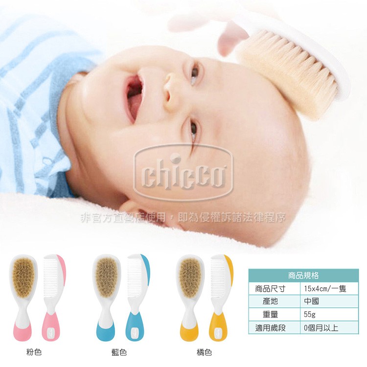 chicco-嬰兒專用髮梳組(3色)粉色|藍色|橘色Baby Grooming Toolschicco官方直營-義大利嬰幼館