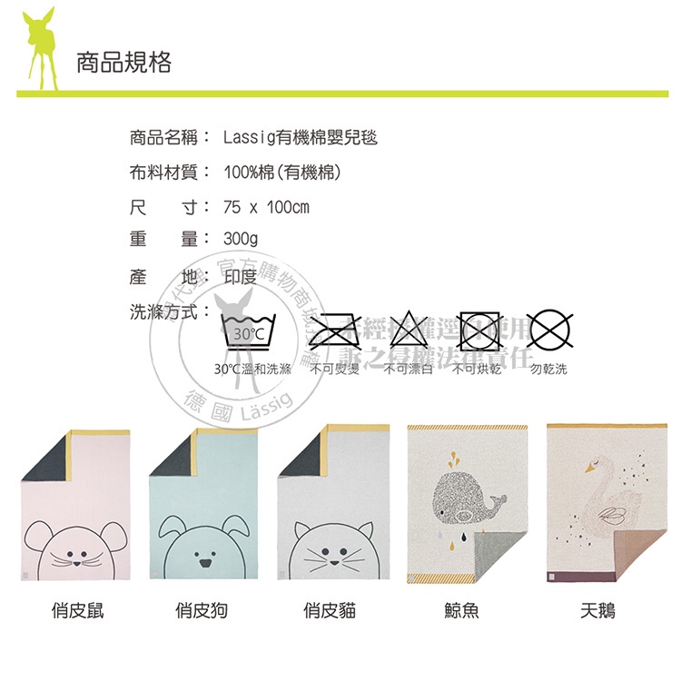 德國Lassig-有機棉嬰兒毯(多款)鯨魚|天鵝|俏皮鼠|俏皮貓|俏皮狗Mattresses & Beddingchicco官方直營-義大利嬰幼館
