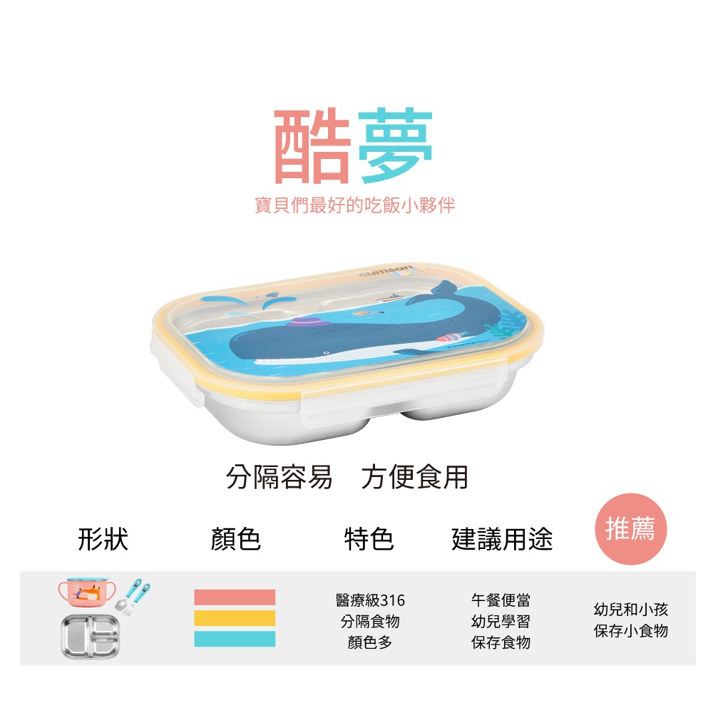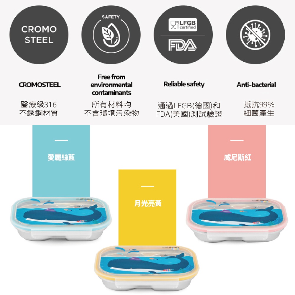 Cuitisan 酷藝師 酷夢系列 小鯨四格餐盤(約500ml) 316可微波不鏽鋼 兒童餐具愛麗絲藍|威尼斯紅|月光亮黃UtensilsCuitisan 酷藝師 X Hanplus 官方旗艦店