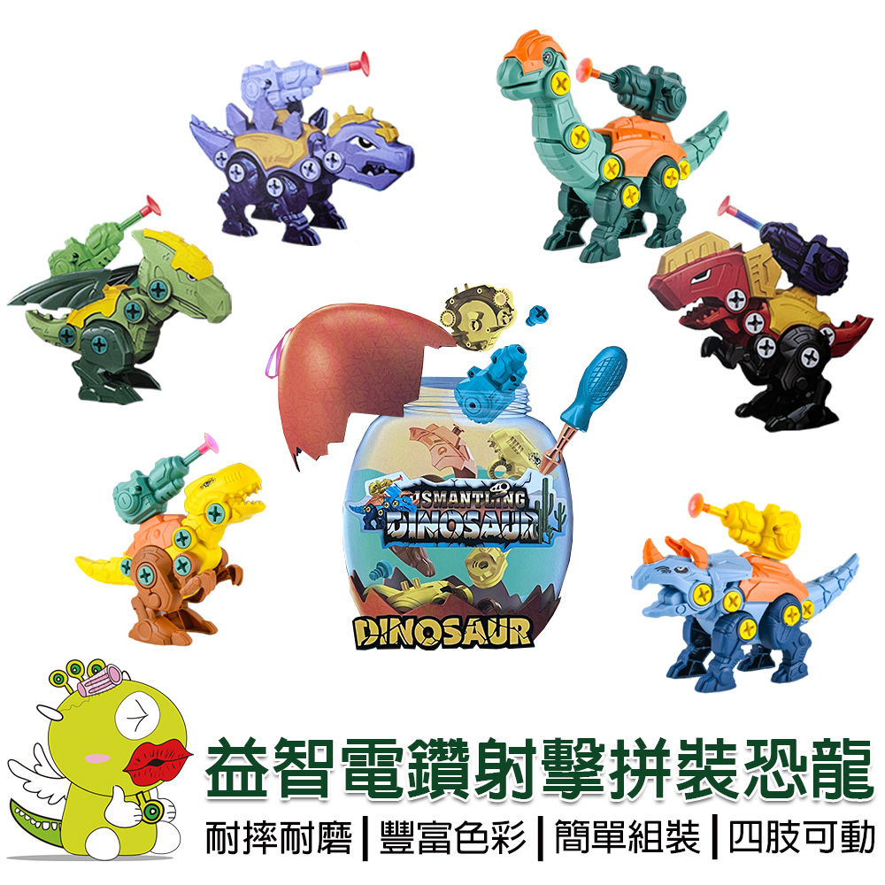 【啾愛你】益智電鑽射擊拼裝恐龍 DIY電鑽拆裝恐龍 拼裝玩具 動手DIY 組裝玩具 積木3入組附電鑽、十字起|6入組附蛋殼、十字起Block ToysChuLoveU 啾愛你