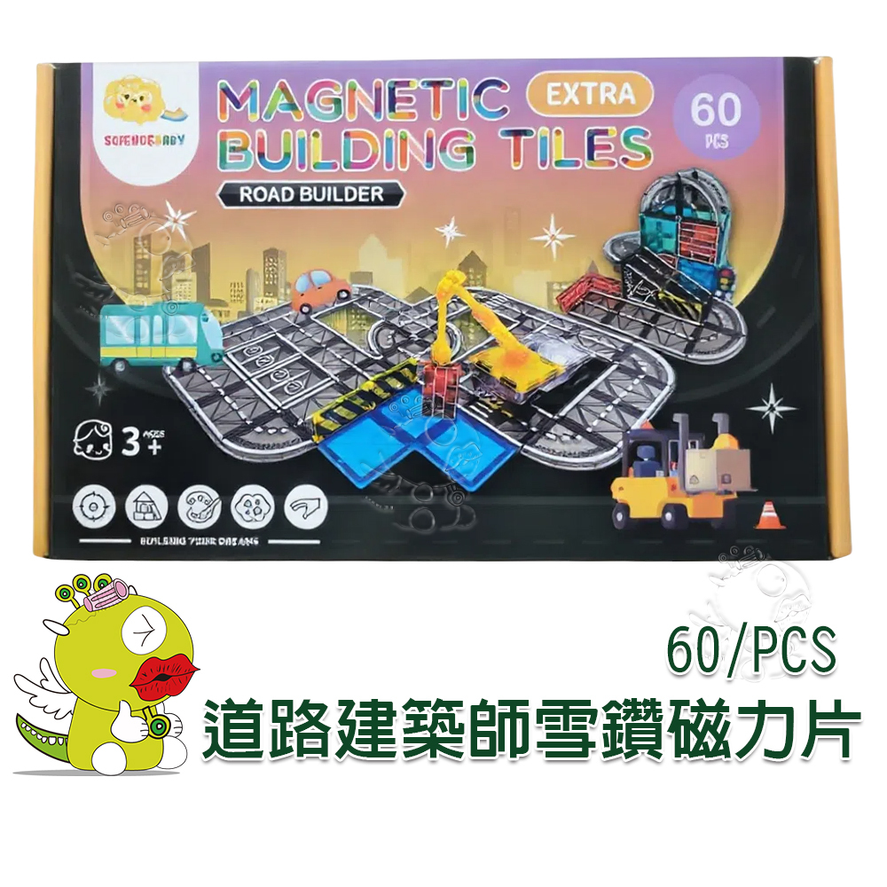 【啾愛你】ScienceBaby 道路建築師雪鑽磁力片60片 磁力建構片 積木道路建築師60 PCSBlock ToysChuLoveU 啾愛你