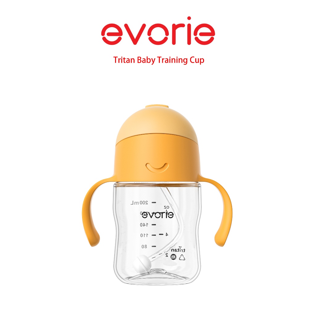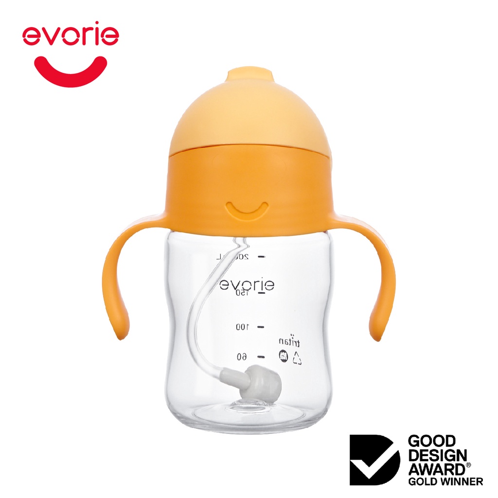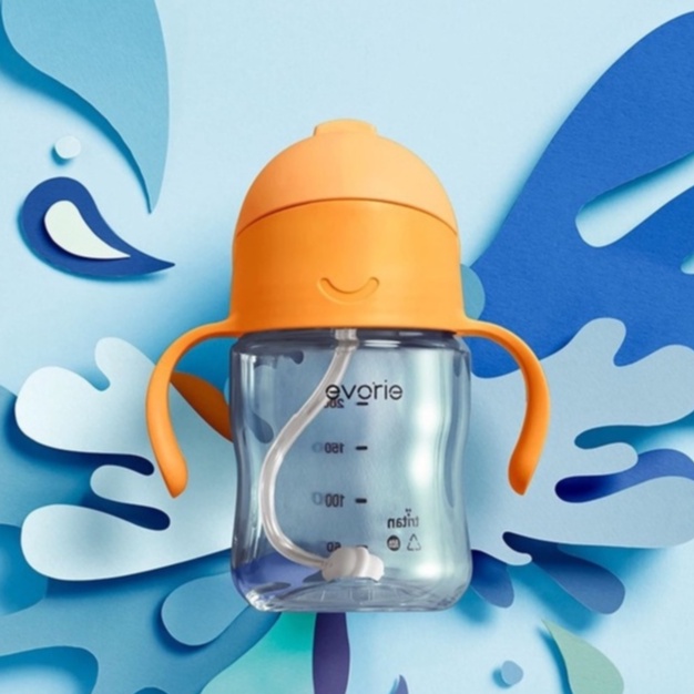 【evorie】Tritan 360度防漏吸管學習水杯200ml(6m+) 南瓜橙 /澳洲獲獎設計/嬰兒學飲杯bboxH無額外吸管|+1 額外吸管UtensilsEvorie 愛得利品牌旗艦店