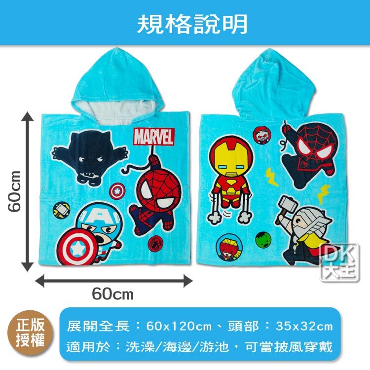 復仇者連帽浴巾 兒童浴衣浴袍 鋼鐵人/蜘蛛人/美國隊長 正版授權【DK大王】藍色/110款|藍色/108款Bath Robes, Towels & Wash ClothsDK大王旗艦店