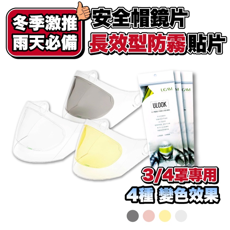 UGAM ULOOK 3/4罩專用安全帽鏡片防霧貼片|鏡片起霧救星透明|夜視黃|遮陽灰|高對比粉EXSHOP 極限專賣