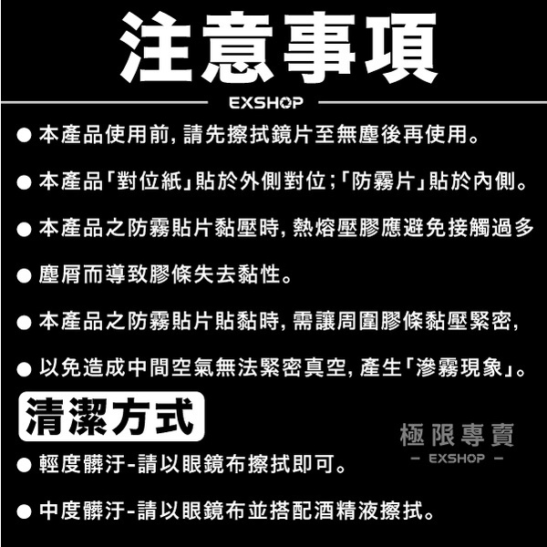 UGAM ULOOK 3/4罩專用安全帽鏡片防霧貼片|鏡片起霧救星