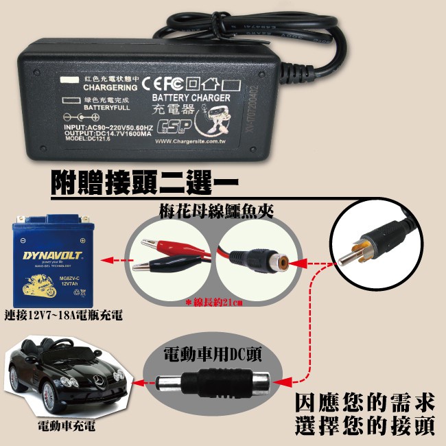 【CSP】12V1.6A自動充電器附鱷魚夾線 充電器 12V充電器 鉛酸電池充電 電動車 玩具車 童車12V1.6A_RCA附梅花母線鱷魚夾|12V1.6A_RCA附DC頭|12V1.6A_RCA附鱷魚夾線+DC頭|12V1.6A_RCA頭|12V1.6A_DC頭OthersCSP進煌 藍騎士 電池電瓶充電器 電瓶檢測器 膠體電池 太陽能電池