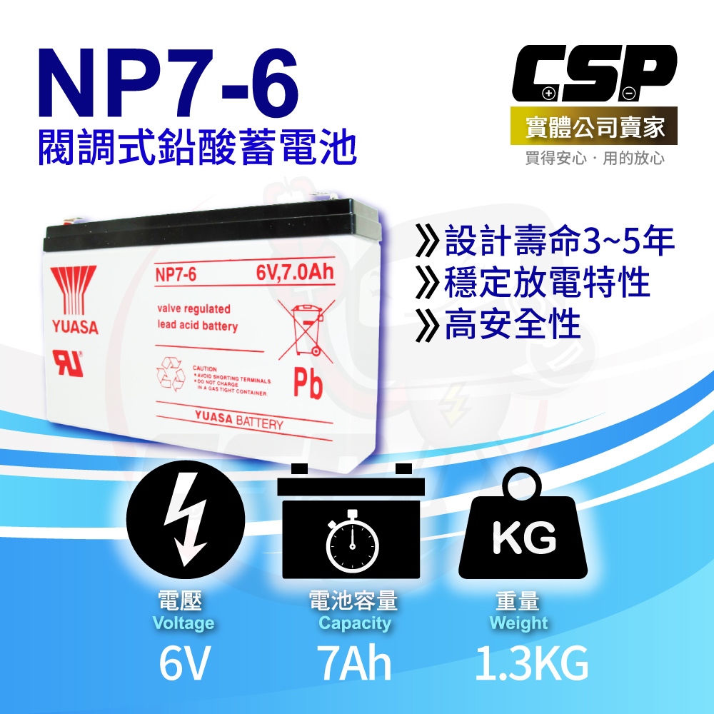 【CSP】YUASA湯淺NP7-6鉛酸電池6V7Ah 充電燈具 UPS POS系統機 電子秤 電動工具 兒童電動車【CSP】YUASA湯淺NP7-6鉛酸電池6V7Ah 充電燈具 UPS POS系統機 電子秤 電動工具 兒童電動車Batteries & AccessoriesCSP進煌 藍騎士 電池電瓶充電器 電瓶檢測器 膠體電池 太陽能電池