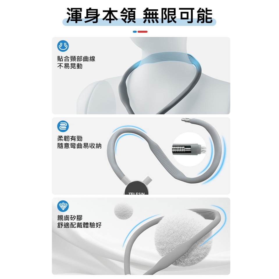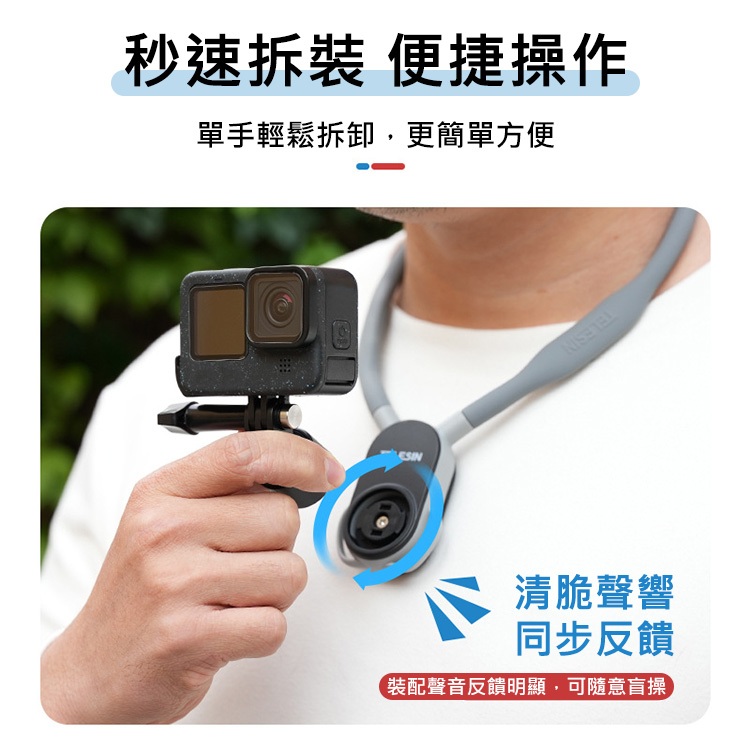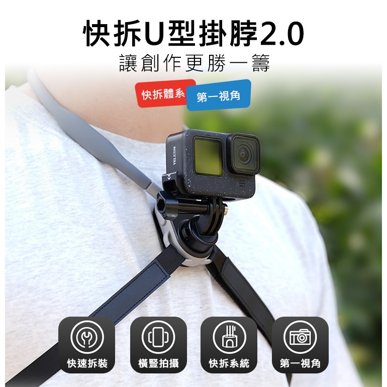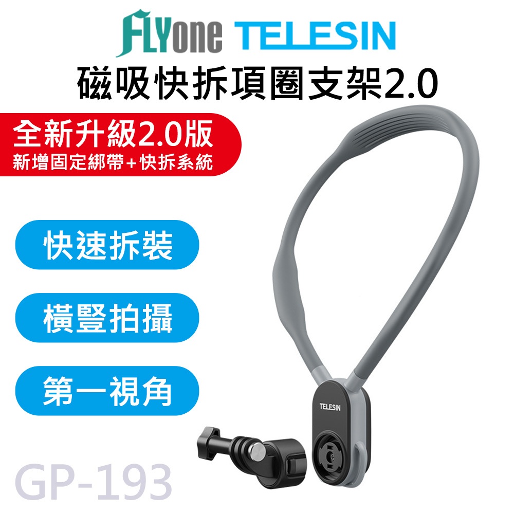 TELESIN泰迅 新款2.0 磁吸快拆 加大 項圈支架 U型掛脖支架 (含綁帶) 攝影機掛脖支架 GP-193標配(2.0升級款)|標配(2.0升級款)+手機夾配件FLYone|領先者|SJCAM原廠授權–行車記錄器/運動攝影機