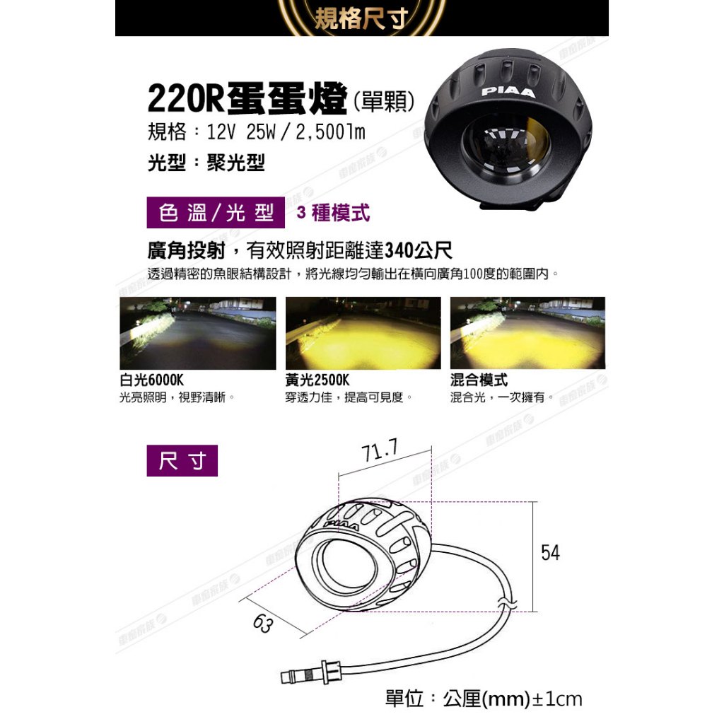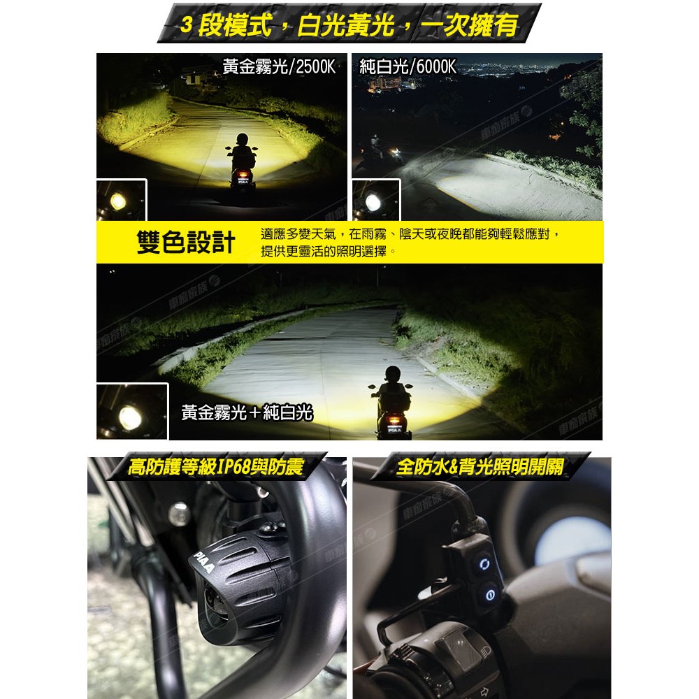 日本PIAA 220R 兩輪雙色蛋蛋燈 LED輔助燈/霧燈 (白+黃+混和光/三模式) 機車專用《加碼送安裝用保桿夾》買就送【極小保桿夾17~22mm 兩入】|買就送【大保桿夾35~52mm 兩入】|買就送【小保桿夾25~32mm 兩入】LightingCARBUFF 車痴汽車用品