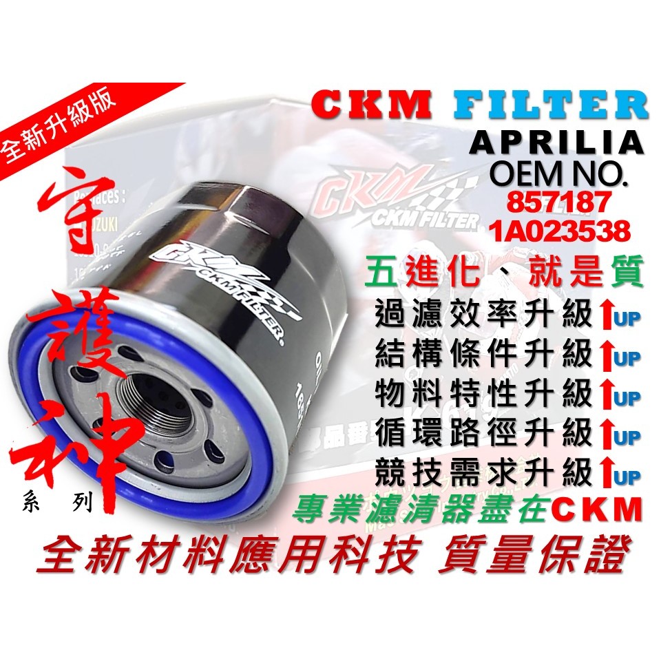 【CKM】APRILIA RSV1000 RSV4 RS457 RS660 大型重型機車 機油濾芯 機油芯 超越原廠正廠超越原廠專用高效機油濾芯一顆|CKM 機油濾芯 專用 拆卸碗公蓋一只Fuel SystemCKM FILTER 懋碩實業有限公司
