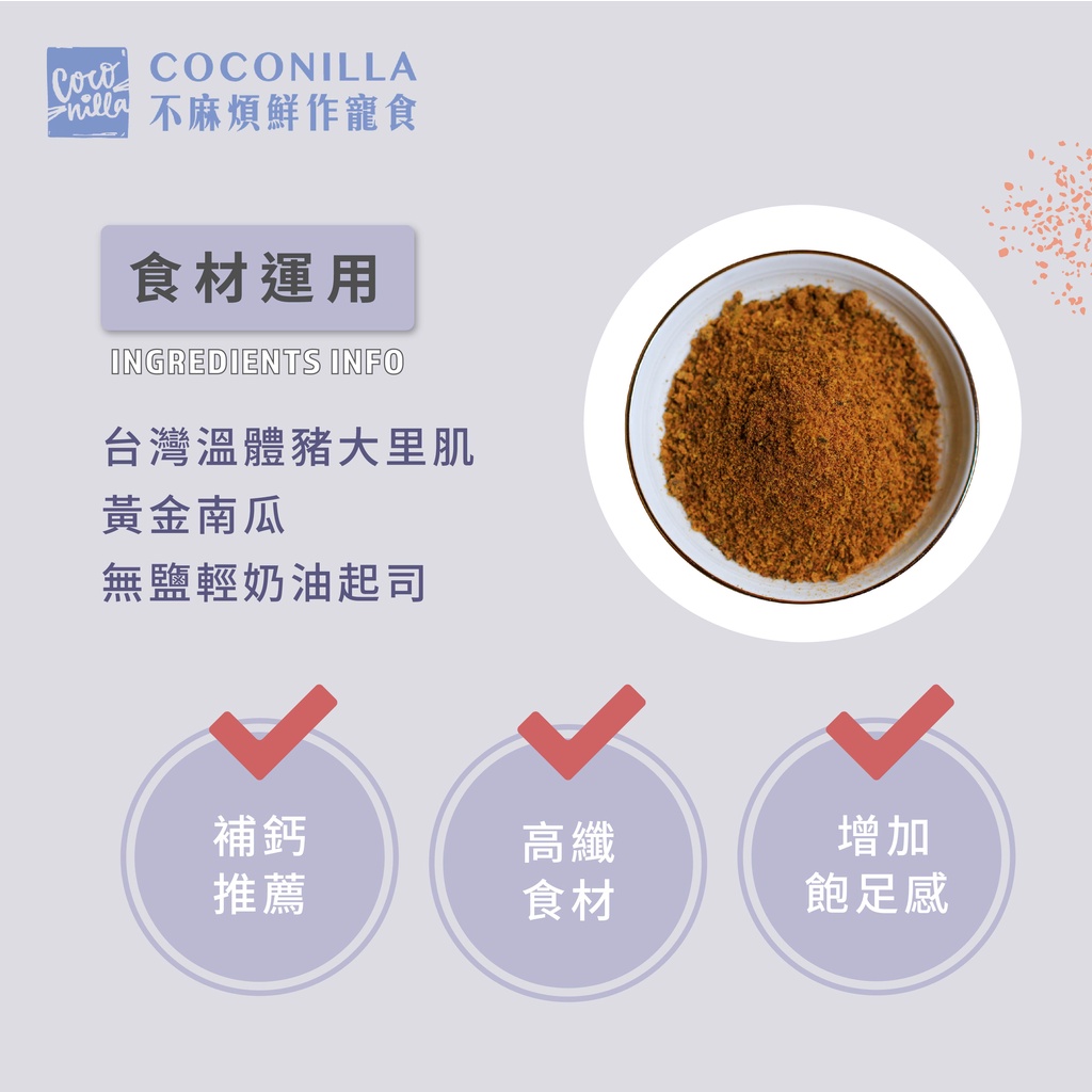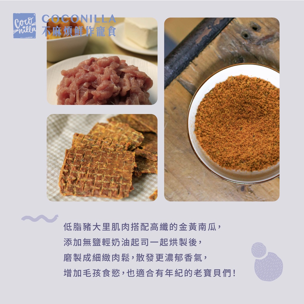 COCONILLA 寵物佐餐肉鬆粉【南瓜起司豬】50g/罐 高纖排毛/濃郁香氣COCONILLA 寵物佐餐肉鬆粉【南瓜起司豬】50g/罐 高纖排毛/濃郁香氣Dog FoodCOCONILLA 口口迷 寵物鮮食 官方直營