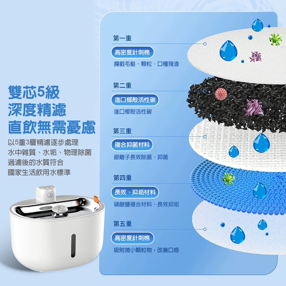 dudupet 寵物飲水機 貓咪飲水機 寵物飲水器 貓咪飲水器 餵食容器 狗狗 貓咪 寵物喝水 靜音 過濾 自動飲水器寵物飲水機 白色|濾芯6片Bowls & FeedersCrazy GoGo 3C精品配件