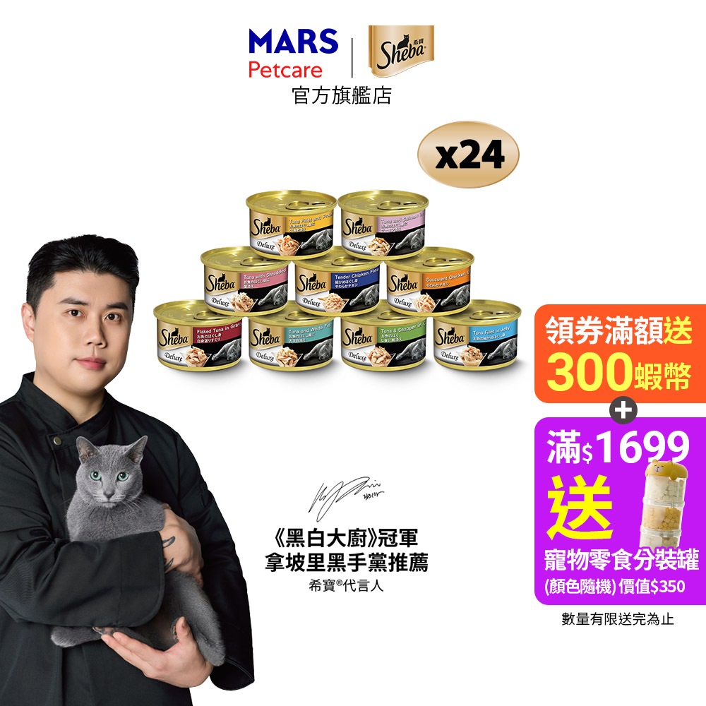 【Sheba希寶】金罐 24入 (85g/罐) 多口味 寵物 貓罐頭/濕糧鮮湯鮪魚及蝦(湯汁) 85g,24入組|白身鮪魚及鯛魚(湯汁) 85g,24入組|鮪魚及白身魚(湯汁),24入組|香嫩雞絲(湯汁) 85g,24入組|鮪魚及鮭魚(湯汁) 85g,24入組|白身鮪魚(魚凍) 85g,24入組|白身鮪魚(魚凍) 85g,24入組|鮮煮雞胸肉(湯汁) 85g,24入組|鮮湯鮪魚片湯汁85g,24入組|鮪魚及蟹肉(湯汁)85g,24入組Cat FoodCesar西莎 官方旗艦店 寵物食品 | 健綠 | SHEBA | 寶路