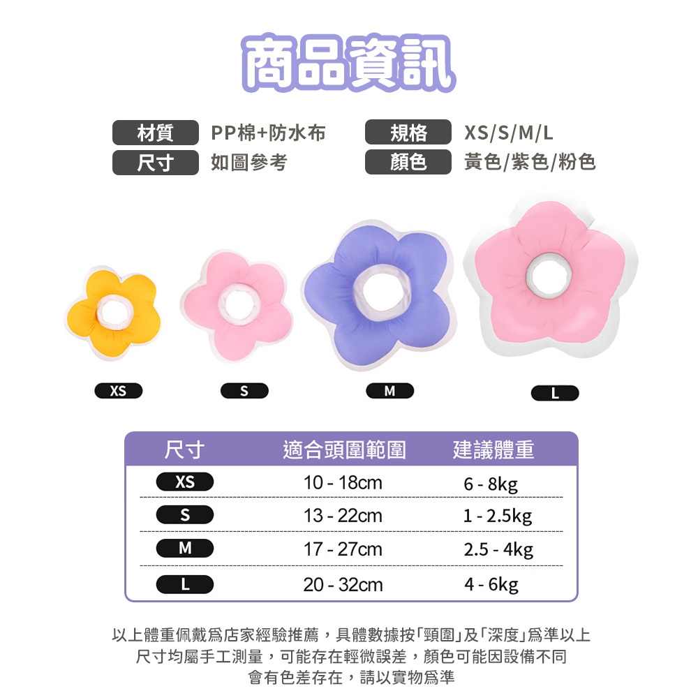 防舔頭套 寵物頭套 伊莉莎白圈 寵物防舔頭套 狗狗防舔圈 貓咪防舔圈 花朵圈紫色XS|紫色S|紫色M|紫色L|黃色XS|黃色S|黃色M|黃色L|粉色XS|粉色S|粉色M|粉色LNeck AccessoriesDA量販店