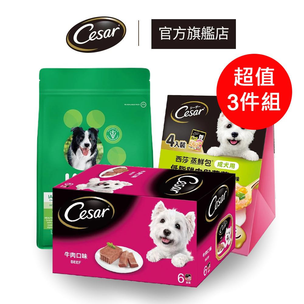 【Cesar西莎】狗狗精選A組 (精緻餐盒 6入 +蒸鮮包 4入+ 愛慕思乾糧 1.5Kg) 獨家組蒔蘿焗烤菲力牛6入+低脂雞蔬4入+乾糧雞|田園香米燉牛肉6入+低脂雞蔬4入+乾糧雞|南瓜菠菜烤嫩雞6入+低脂雞蔬4入+乾糧雞|牛肉6入+低脂雞蔬4入+乾糧雞肉|雞肉6入+低脂雞蔬4入+乾糧雞肉|牛肉及肝6入+低脂雞蔬4入+乾糧雞肉Dog FoodCesar西莎 官方旗艦店 寵物食品 | 健綠 | SHEBA | 寶路