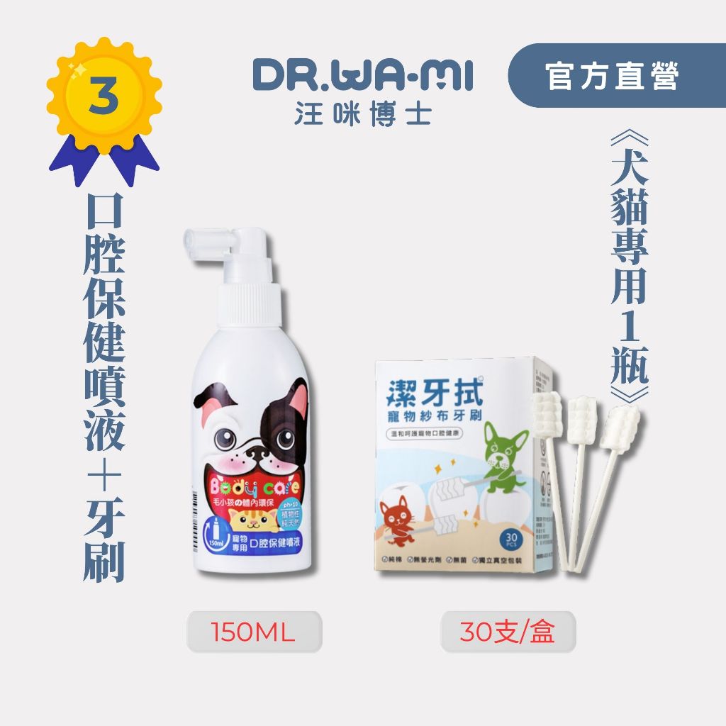 【汪咪博士】熱銷TOP3-口腔保健噴液x1瓶+潔牙拭x1盒犬專用x1+潔牙拭1盒|貓專用x1+潔牙拭1盒Oral CareDr.Wa-Mi汪咪博士官方旗艦店