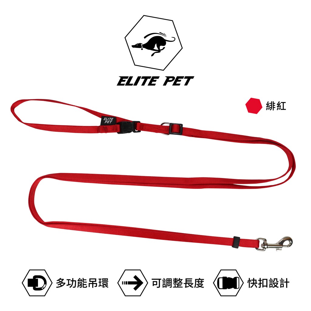 ELITE PET 艾利沛 經典系列 調整式牽繩 XS 2-5公斤 多色緋紅|粉紅|寶藍|軍藍|軍綠|墨黑|外星綠|火星橘Leashes, Collars, Harnesses & MuzzlesELITE PET 艾利沛 官方直營旗艦館