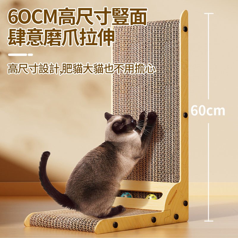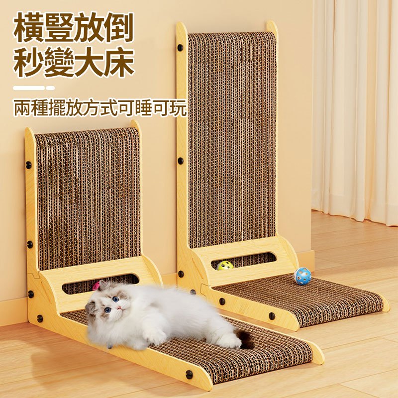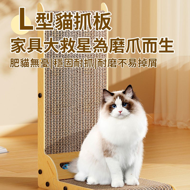 【Familiars魔寵】貓抓板 貓抓柱 瓦楞貓抓板 内嵌鈴鐺玩具 耐磨不掉屑防抓耐抓 L形立式貓抓板(10倍蝦幣回饋)原木色小號(15斤以內)|原木色大號(25斤以內)Pet FurnitureFamiliars魔寵丨品牌旗艦店