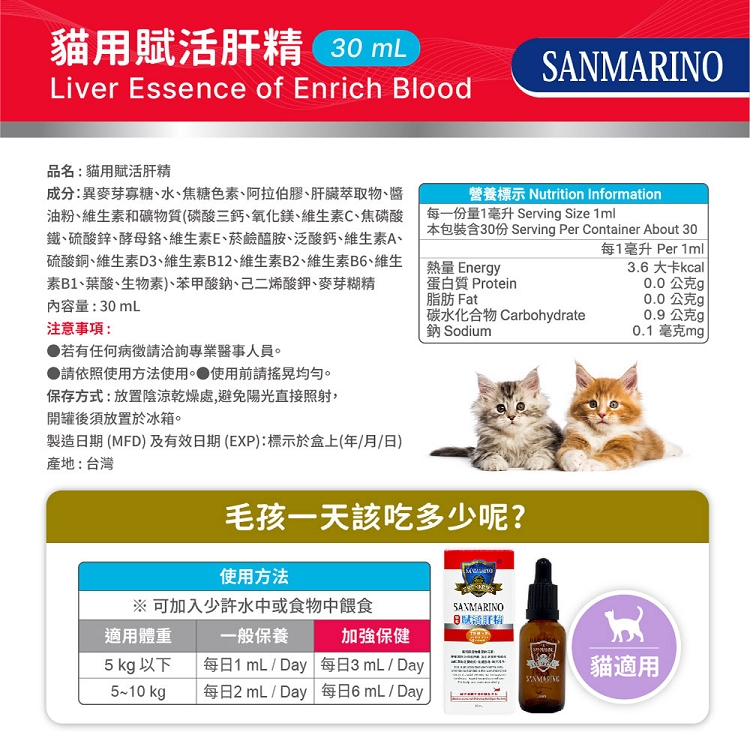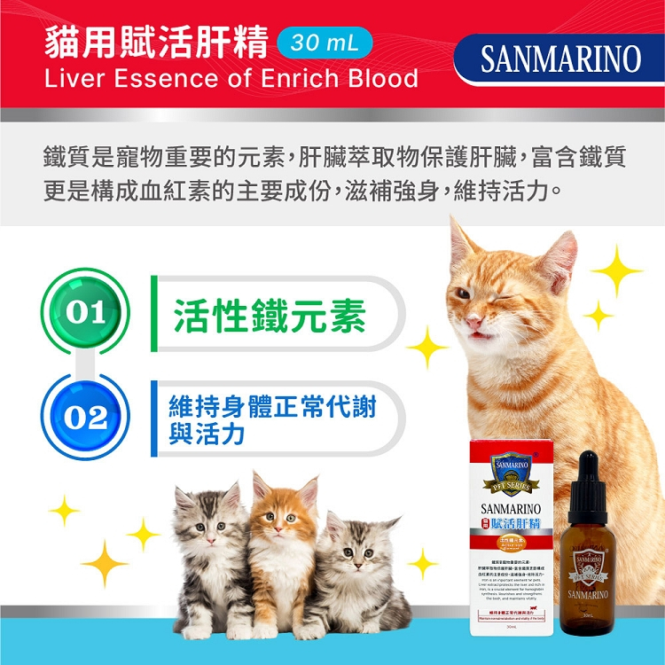 【SANMARINO 聖馬利諾】 貓用賦活肝精 30ml【SANMARINO 聖馬利諾】 貓用賦活肝精 30mlVitamins & SupplementsE-Take 愛美麗商城