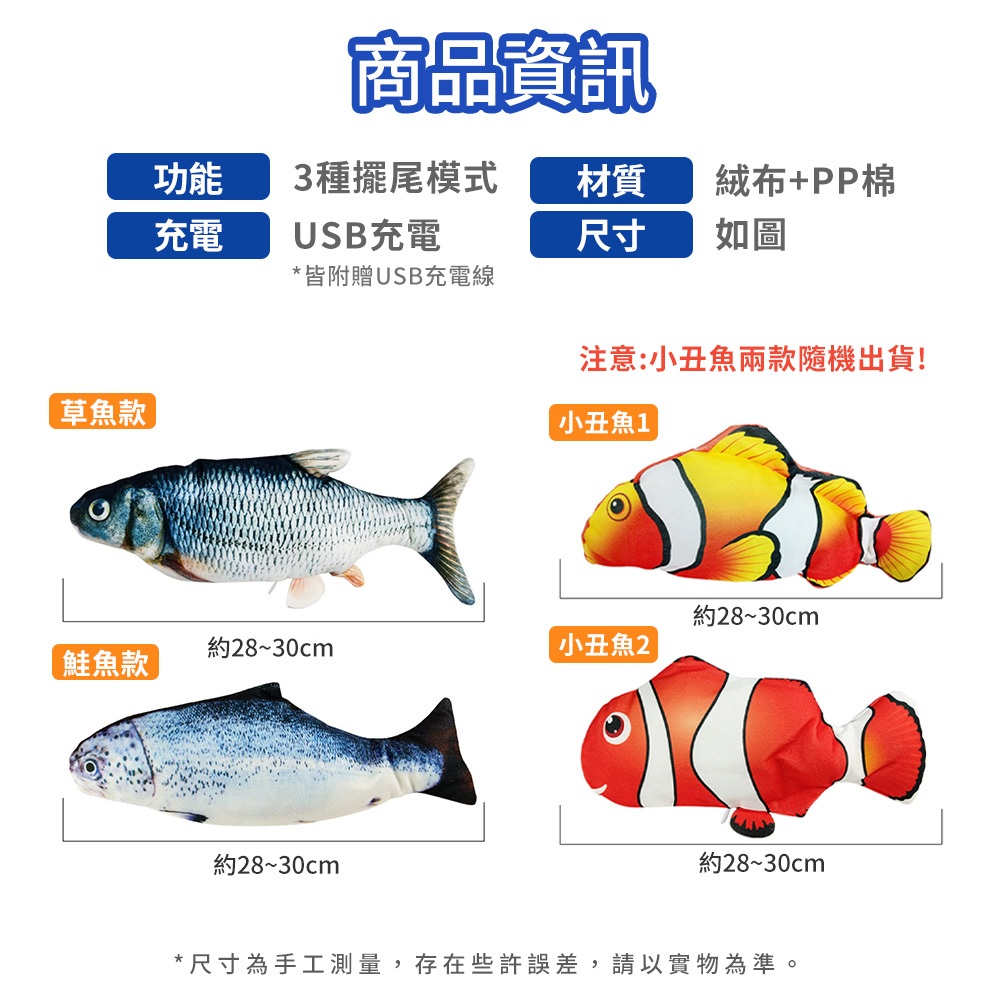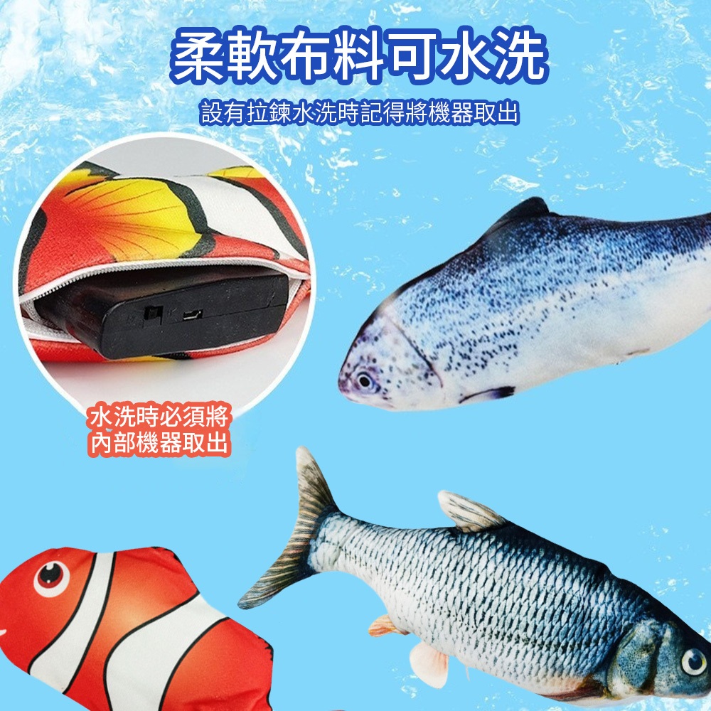 跳跳魚 電動魚 電動跳跳魚 仿真電動魚 貓玩具 狗玩具 寵物玩具 互動玩具草魚|鮭魚|小丑魚ToysDA量販店