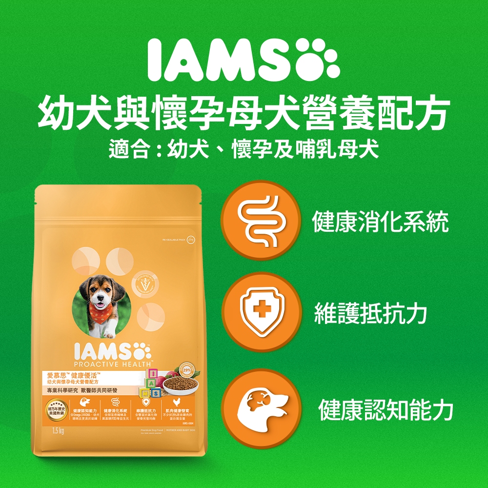 即期品_【IAMS愛慕思】狗乾糧 單入 (1.5kg/包) 幼犬與懷孕母犬 寵物 狗飼料/乾糧幼犬與懷孕母犬配方(25/10/14),1包Dog FoodCesar西莎 官方旗艦店 寵物食品 | 健綠 | SHEBA | 寶路