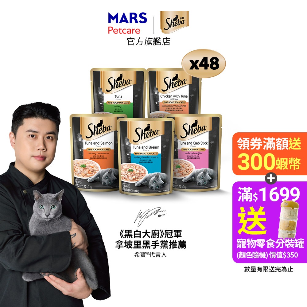 【Sheba希寶】鮮饌包(主食) 48入 (70g/包) 多口味 寵物 貓罐頭/濕糧鮪鮭口味 70g,48入組|鮪蟹口味 70g,48入組|鮪鯛口味 70g,48入組|鮪雞鰹口味 70g,48入組|鮪魚口味 70g,48入組Cat FoodCesar西莎 官方旗艦店 寵物食品 | 健綠 | SHEBA | 寶路