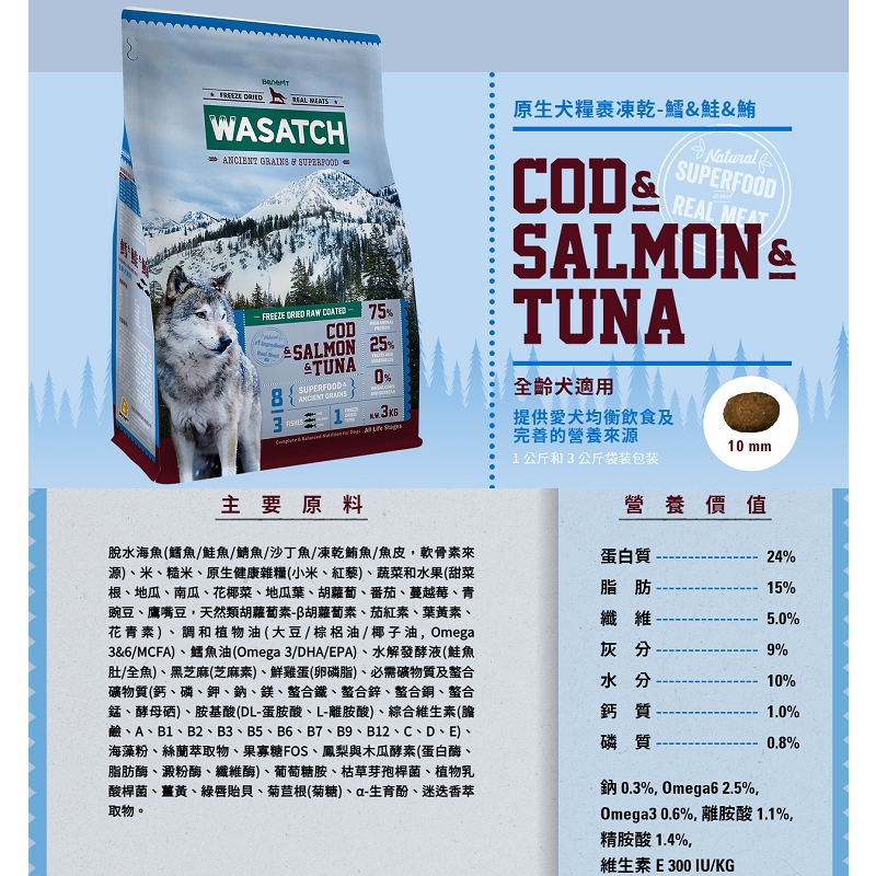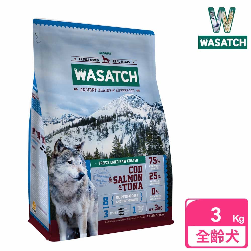 【WASATCH】瓦莎奇原生犬糧 3kg 3種魚肉 鱈+鮭+鮪【WASATCH】瓦莎奇原生犬糧 3kg 3種魚肉 鱈+鮭+鮪Dog FoodE-Take 愛美麗商城