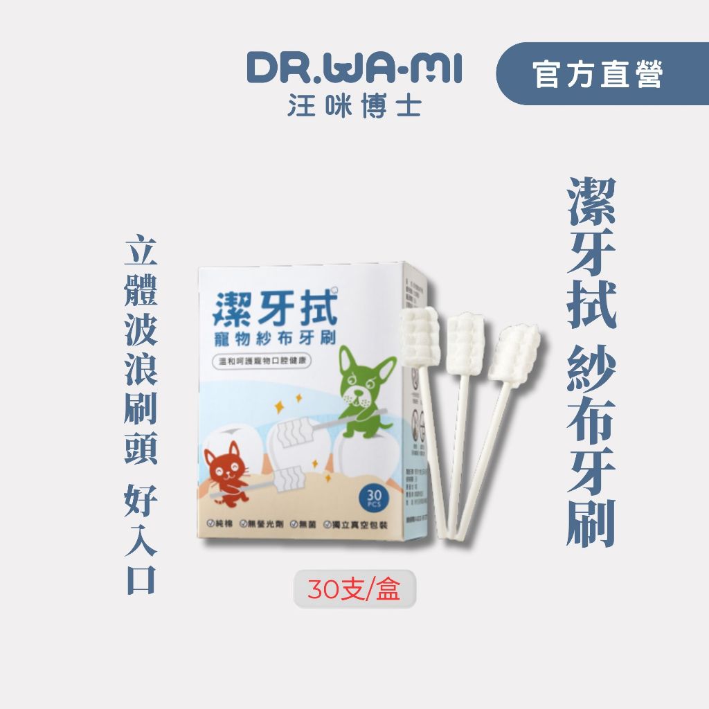 【汪咪博士】潔牙拭寵物紗布牙刷30入/寵物牙刷、貓刷牙、狗刷牙、貓牙刷、狗牙刷、寵物牙膏、犬貓口腔保健30支/盒Oral CareDr.Wa-Mi汪咪博士官方旗艦店