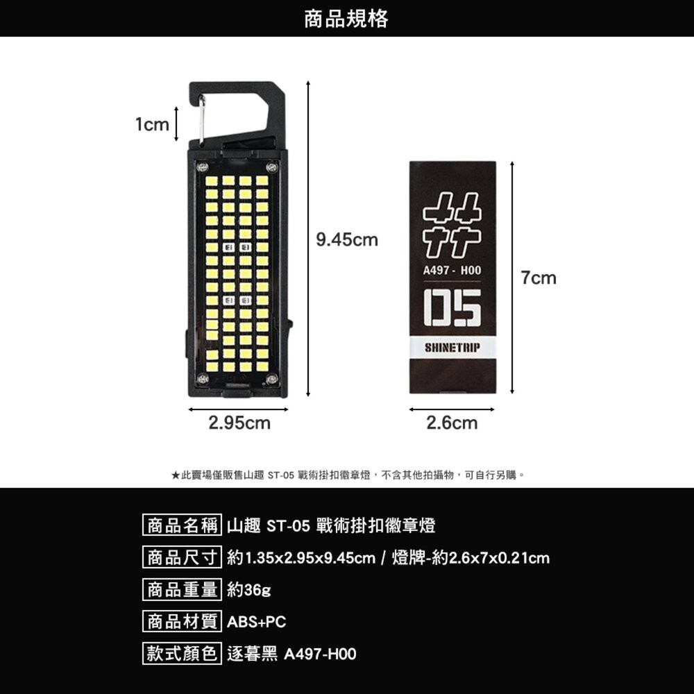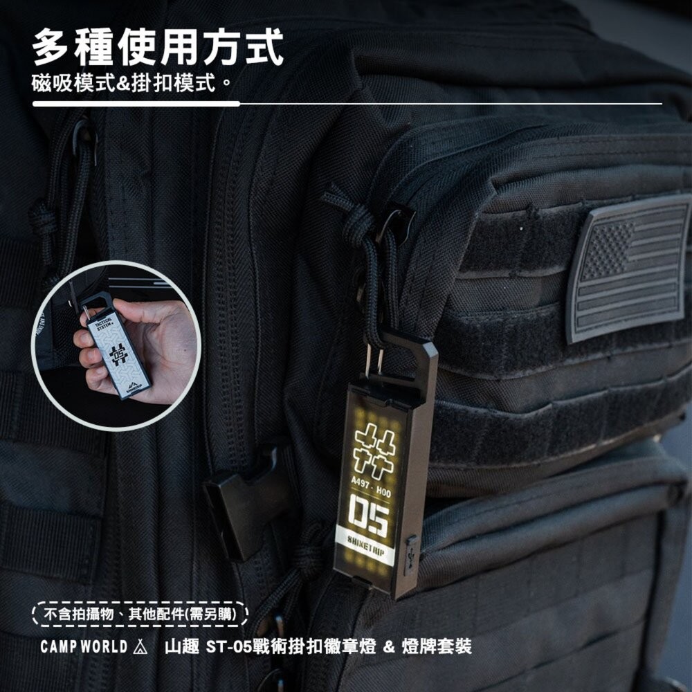 山趣 ST-05 戰術掛扣徽章燈 燈牌套裝 燈牌 掛燈 露營ST-05 戰術掛扣徽章燈-逐暮黑|ST-05 徽章燈【燈牌套裝】Camping & HikingCAMP WORLD 逐露 天下 露營 登山 生活 商城旗艦店