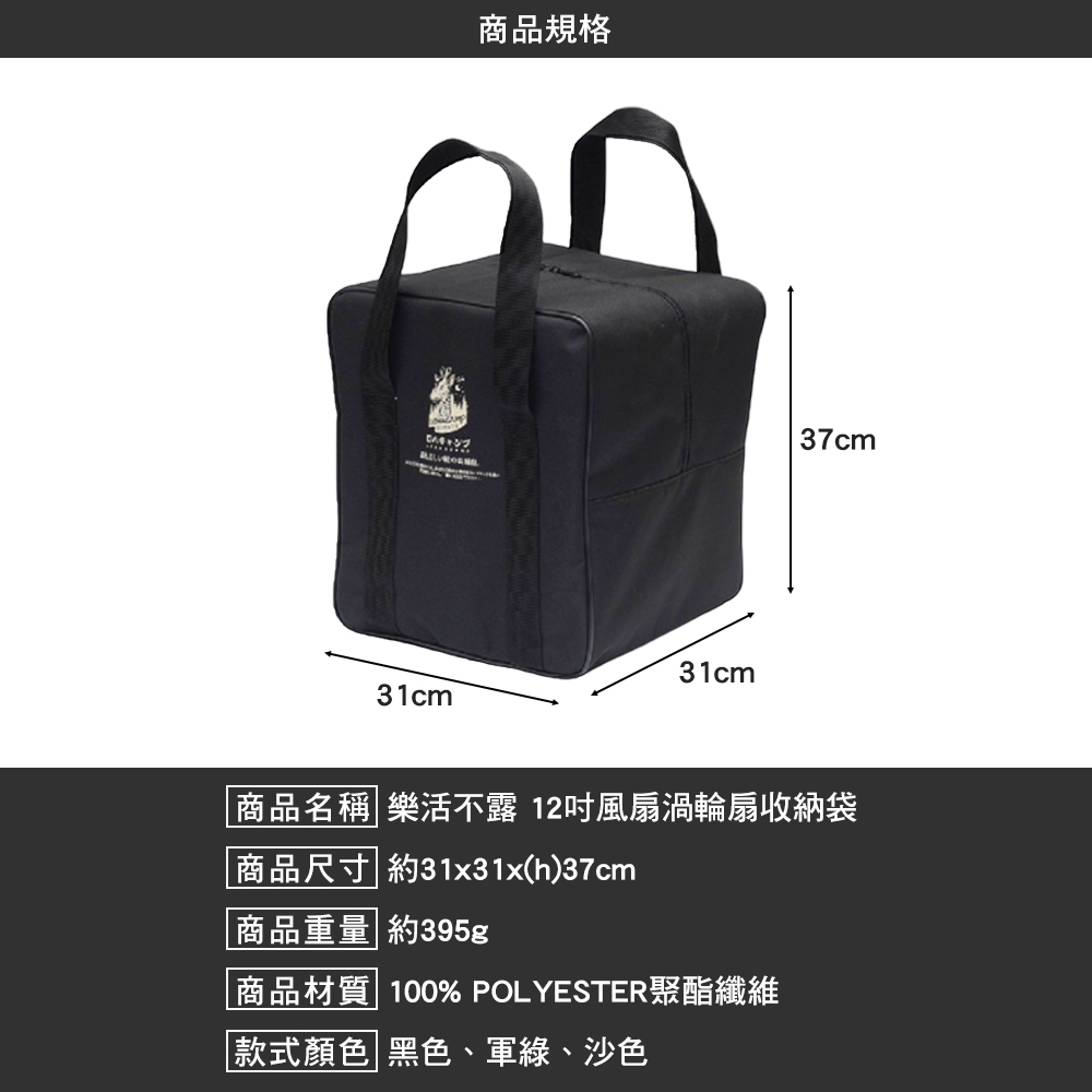 樂活不露 12吋風扇 渦輪扇 收納袋 收納包 裝備袋 露營風扇收納袋 BAG-01B(黑色)|風扇收納袋 BAG-03G(軍綠色)|風扇收納袋 BAG-01S(沙色)Camping & HikingCAMP WORLD 逐露 天下 露營 登山 生活 商城旗艦店