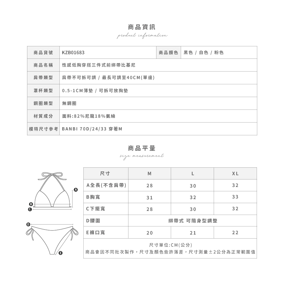 【DEPIC】性感低胸穿搭三件式前綁帶比基尼 (白色)|dp select白色M|白色L|白色XLSwimming AttireDEPIC