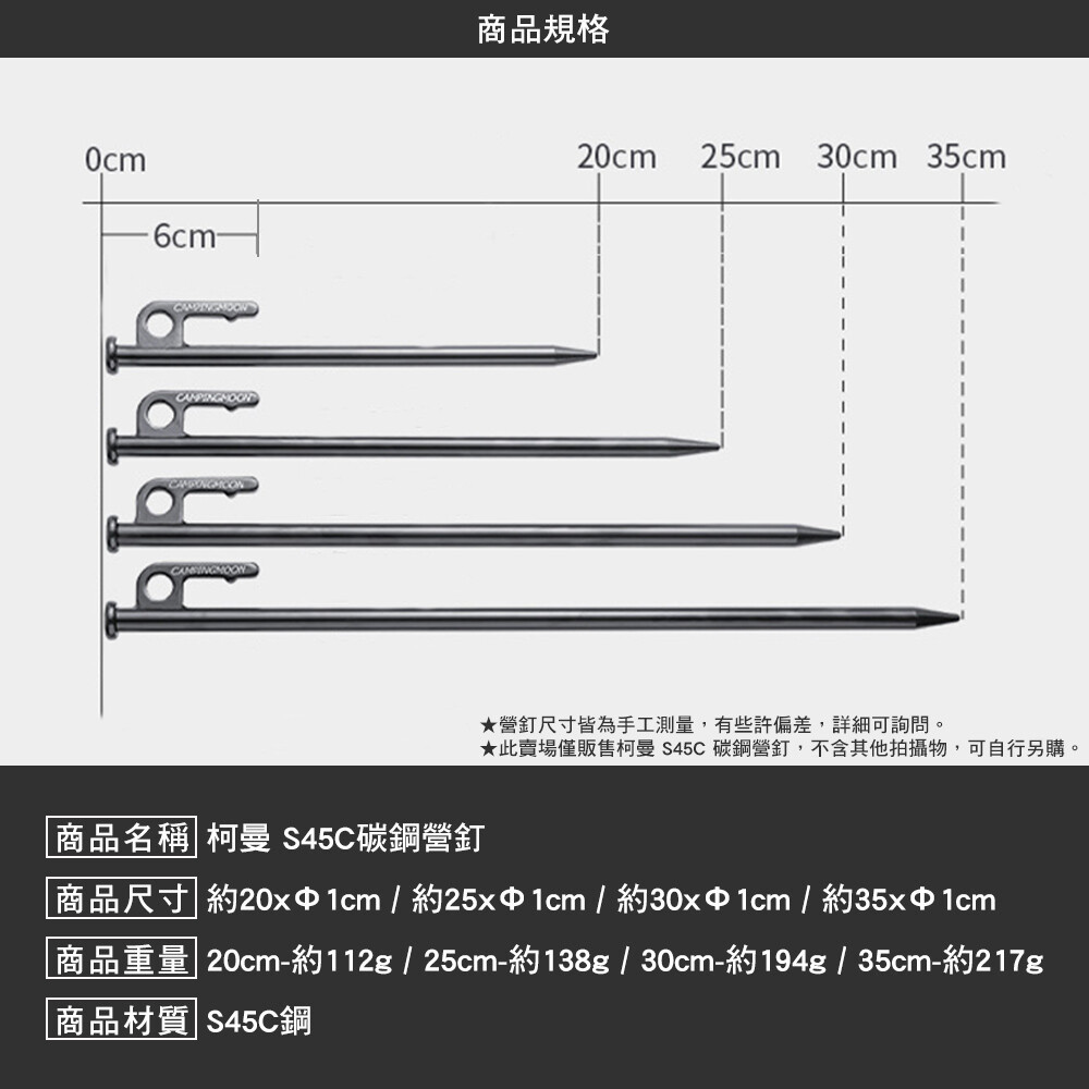 柯曼 S45C 碳鋼營釘 鋼製營釘 買10送1 硬漢二代 營釘 營釘 硬度高 戶外 露營 逐露天下35CM硬漢二代碳鋼營釘 x1,同長度買10送1|20CM硬漢二代碳鋼營釘 x1,同長度買10送1|25CM硬漢二代碳鋼營釘 x1,同長度買10送1|30CM硬漢二代碳鋼營釘 x1,同長度買10送1Camping & HikingCAMP WORLD 逐露 天下 露營 登山 生活 商城旗艦店
