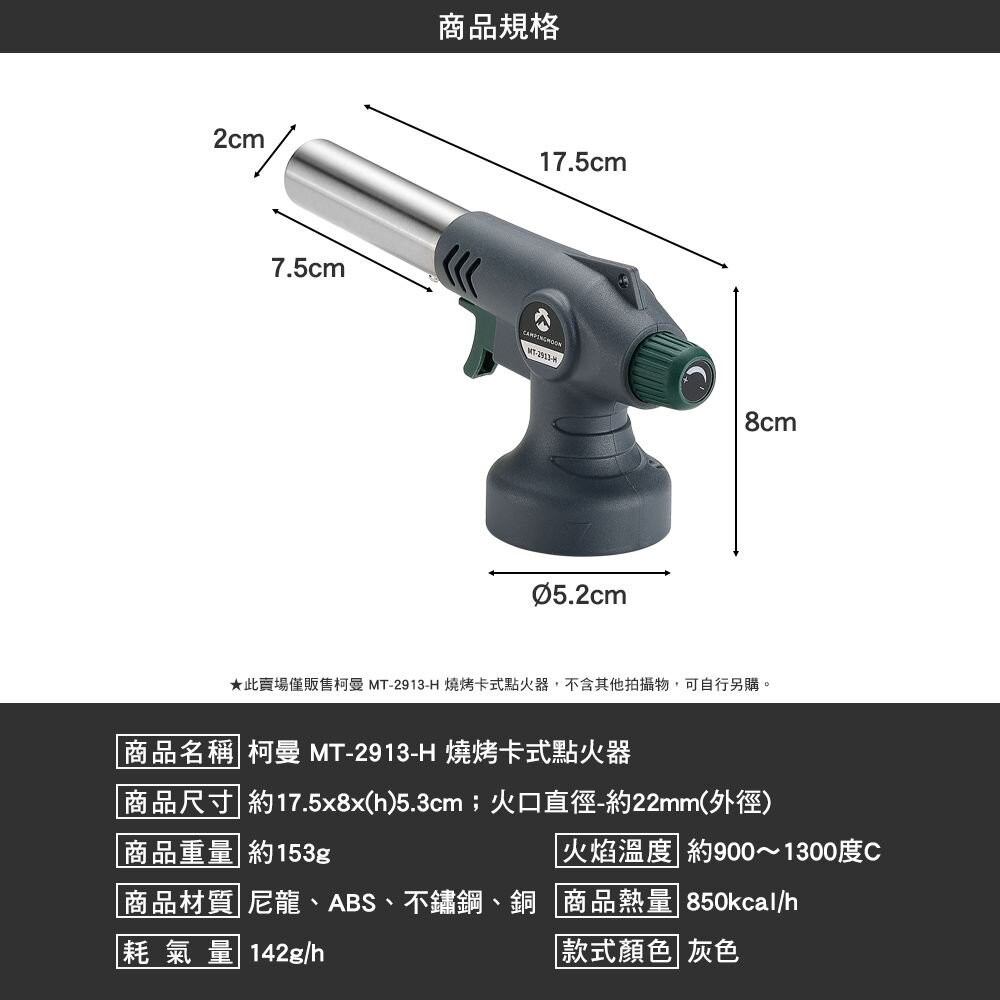 柯曼 燒烤卡式點火器 MT-2913-H 點火槍 噴火槍 卡式瓦斯罐 可倒置 露營MT-2913-H燒烤卡式點火器-灰色Camping & HikingCAMP WORLD 逐露 天下 露營 登山 生活 商城旗艦店
